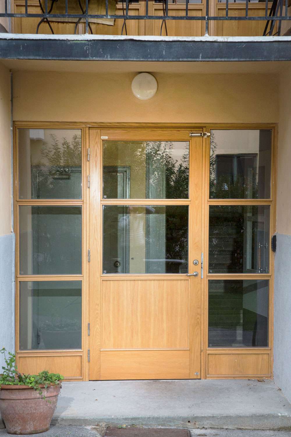 En ny port med moderna lås ger ökat säkerhet och bättre värmeisolering samtidigt som den förskönar byggnaden.